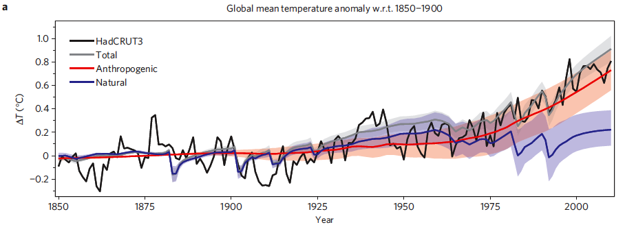 In 1940s it was a bit too warm and the models were unable to reproduce this. Given, the authors say. Greenhouse gases have been responsible for almost all the warming of the last 125 years. Here’s the abstract: